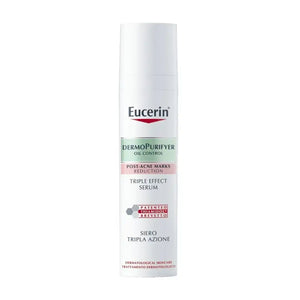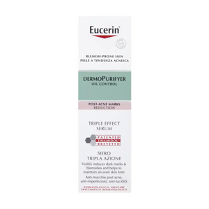 Eucerin DermoPurifyer Triple Effect Serum 40ml visibly reduces dark marks and blemishes, and helps to maintain an even skin tone. Perfect for blemish-prone skin and for reducing post-acne marks