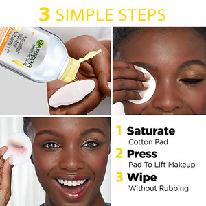 Garnier All In 1 Brightening Micellar Cleansing Water Vitamin C, cleanses skin, removes makeup and excess oil, and boosts glow in just a few swipes. Powerful, yet gentle on skin, this cleansing water contains micelles that capture and lift away dirt, oil and makeup without harsh rubbing.