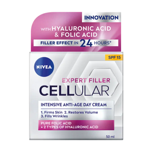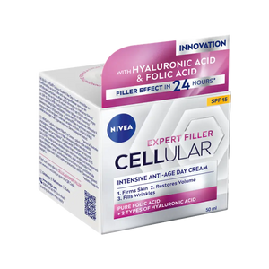 Nivea Cellular Expert Filler Day Cream SPF15 50ml with its innovative formula features a combination of powerful anti-age actives providing filling effect in 24 hours and fighting loss of firmness and volume to reveal younger looking skin.