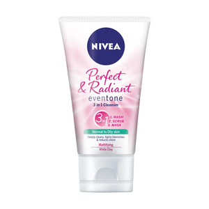 Nivea Perfect & Radiant 3-in-1 Mattifying Cleanser 150ml is specially made for oily skin and can be used as a wash, a scrub or a mask to deeply cleanse skin, eliminate shine and fight blemishes.