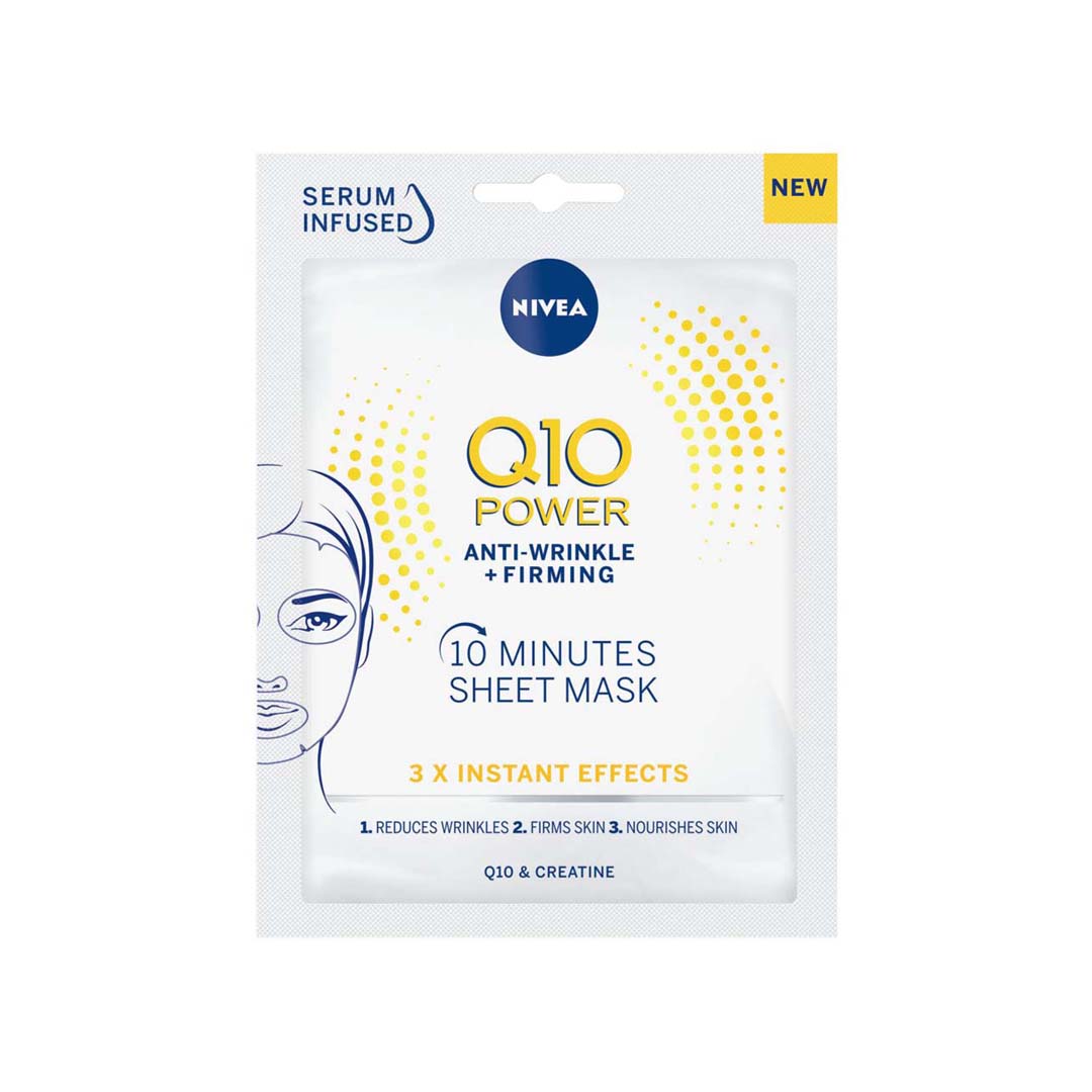 A perfect treat for smoothed and firm skin. Q10, a powerful antioxidant and natural anti-ageing defence is combined with Creatine stimulating skin cell's collagen production. The formula protects against premature skin aging. Take the time to relax and let the NIVEA Q10 POWER Sheet Mask provide your skin with a caring dose of anti-wrinkle power for skin that feels smoothed and has a healthy-looking appearance.