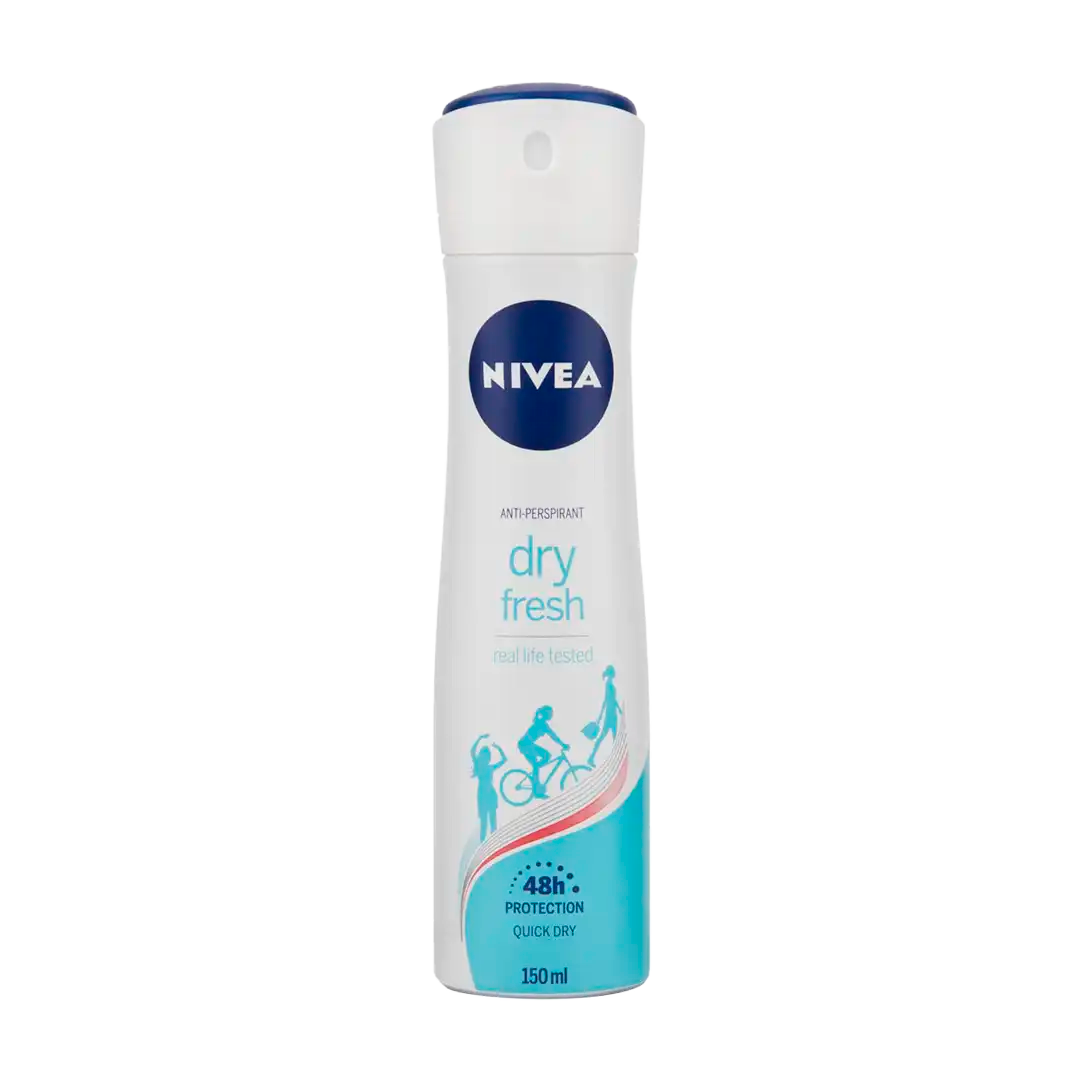 Nivea Dry Fresh Anti-Perspirant 150 ml provides 48-hour protection against perspiration and body odour by combining 2 anti-perspirant active ingredients with long-lasting fragrance.