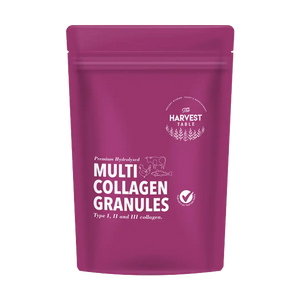 A global first in the collagen market! Our Multi Collagen Granules are the perfect blend of our Bovine, Marine and Chicken Collagens to give you all the benefits of type I, II and III collagens formulated in their ideal ratios. This is a granulated version of our best-selling Multi Collagen Powder so you can now receive the radical benefits of all three types of collagen in one, convenient product. This will ensure optimum results in terms of strong hair and nails, glowing skin, reduced joint aches and a healthy gut. At least 80% of your daily collagen requirements for optimal body functioning is required in the form of type I collagen. Type II is especially useful for people with joint dysfunction and been known to assist with the rebuilding of joints. Because this is a granulated product, it is fast dissolving and virtually tasteless.